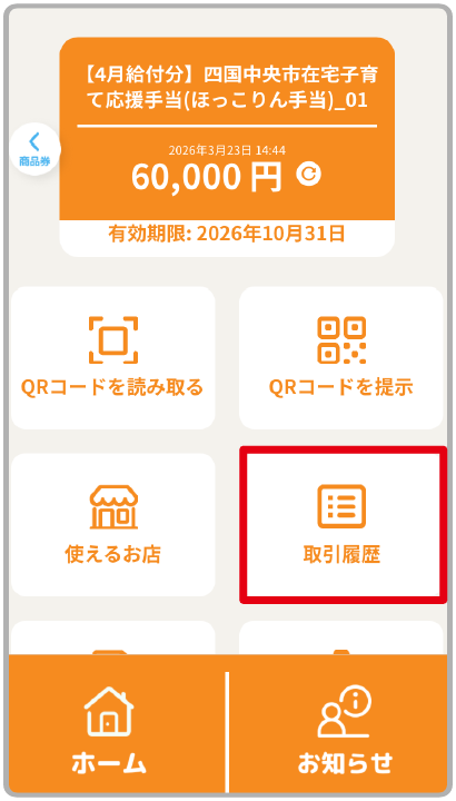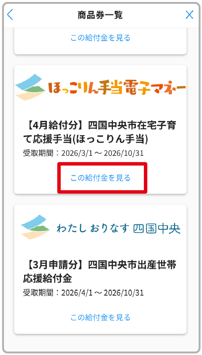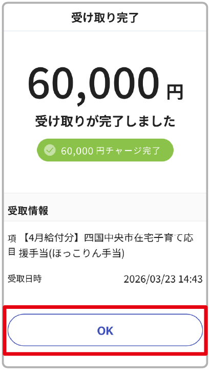 地域限定電子マネー受け取り(給付)完了