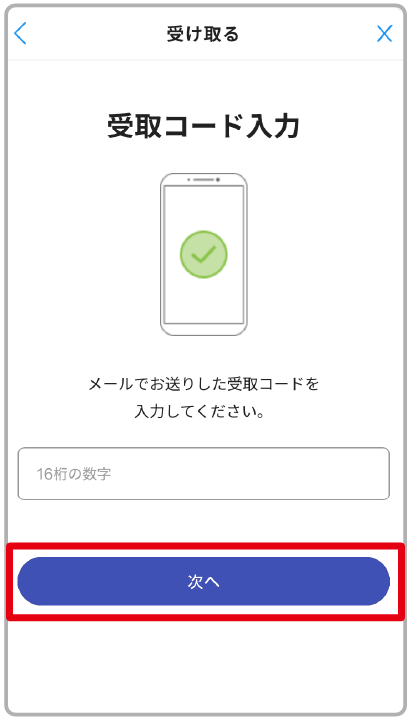 コードが正しければ「次へ」ボタンがタップ可能