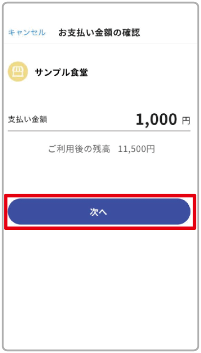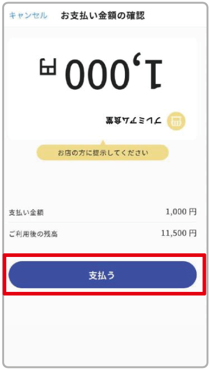 確認画面をお店の方に掲示し、確認が取れたら「支払う」をタップ