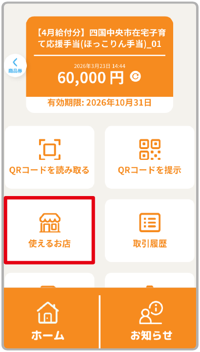 「使えるお店」をタップ