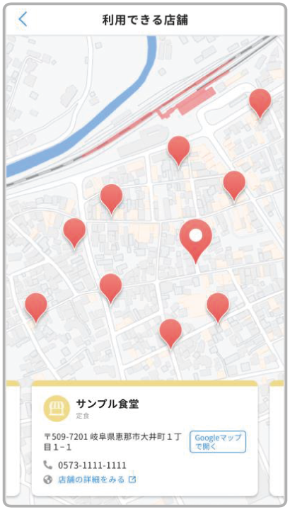 使えるお店のマップが表示される