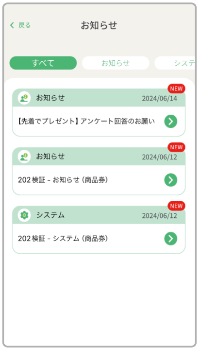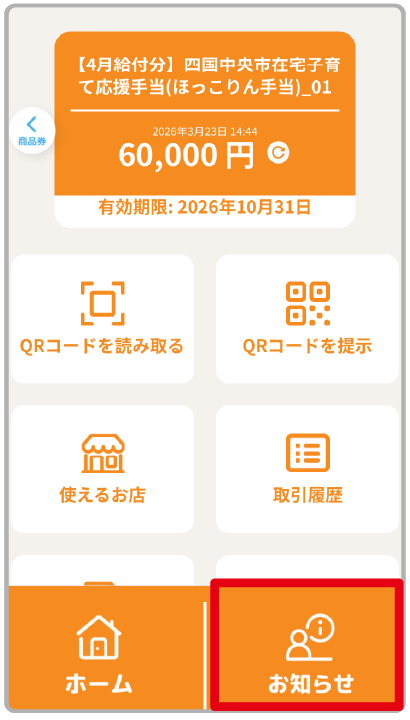 「お知らせ」をタップ