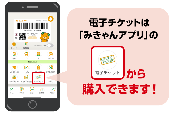 みきゃんアプリにてチケットをお得に購入できます!